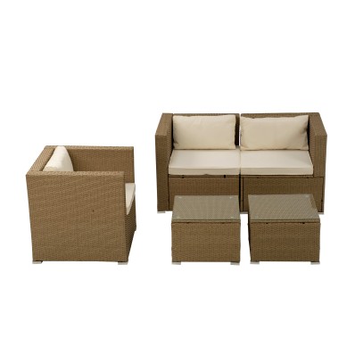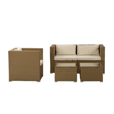 La estructura es de acero inoxidable reforzado recubierto con polietileno de alta densidad trenzado a mano, también conocido como ratán sintético o poliratán, de alta calidad resistente a la intemperie y a los rayos UV.